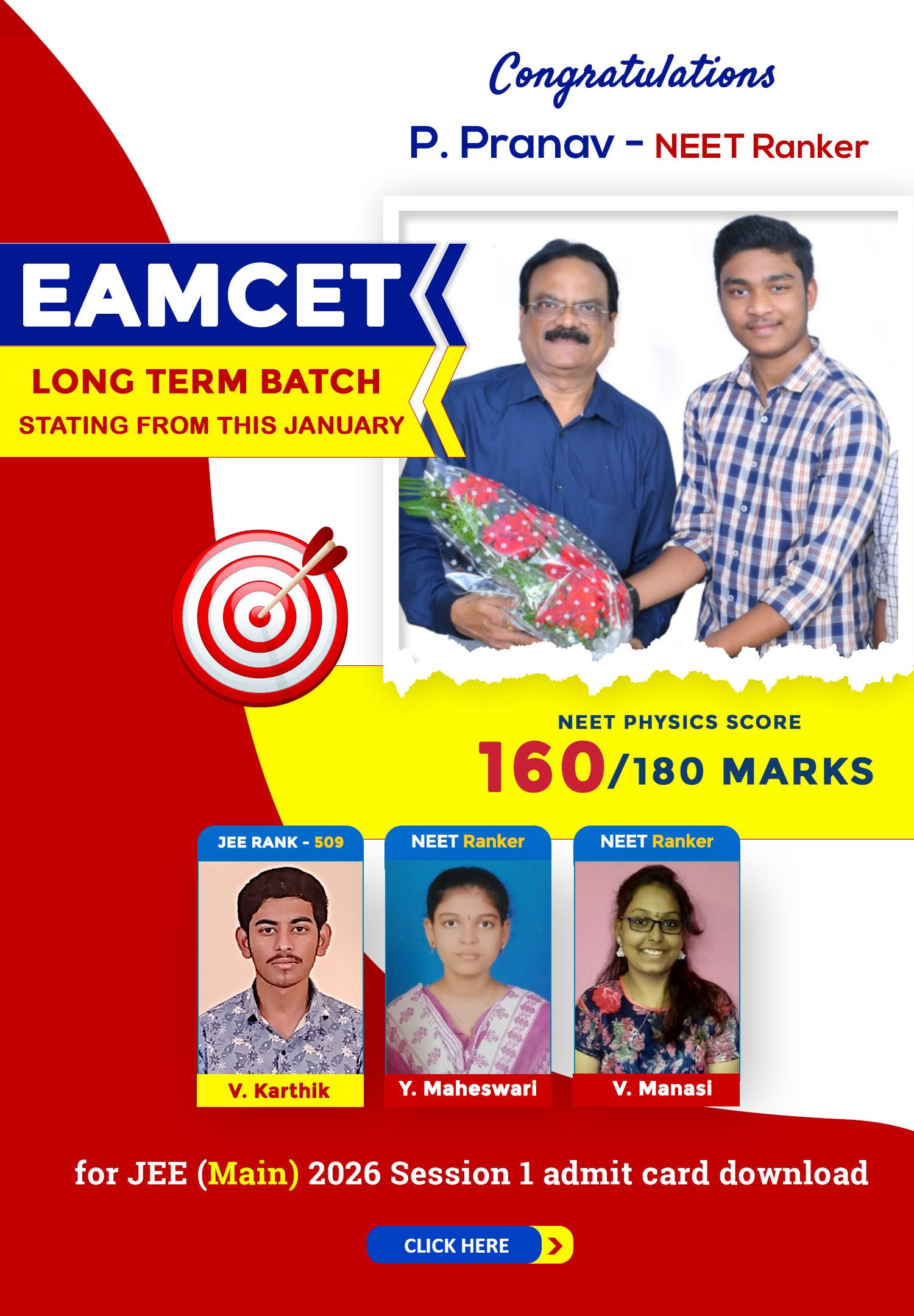 Our mission is not only to create successful rank holders but also to nurture motivated, responsible, and future-ready individuals who can face competitive challenges with integrity and determination. To our students: Dream big, stay focused, work hard, and never stop learning. At AIMS Educational Institutions, we are committed to supporting you at every step, guiding you toward excellence in competitive exams and a bright, successful future.